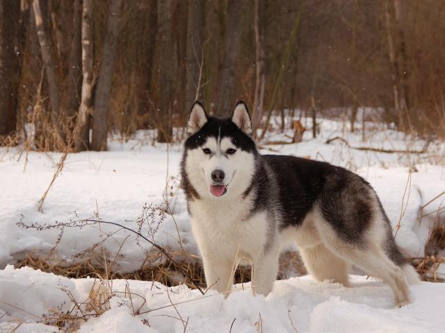 Wallpaper Dog in the spring forest
