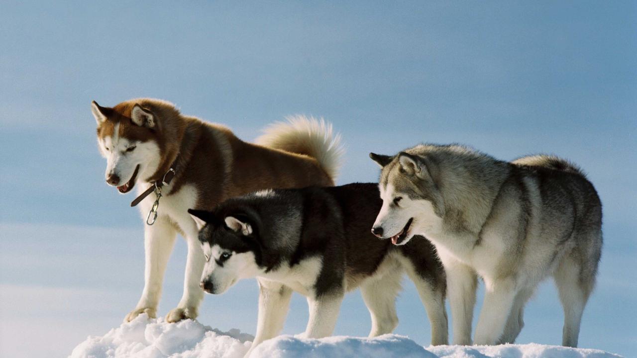 Wallpaper Troika huskies on a hill