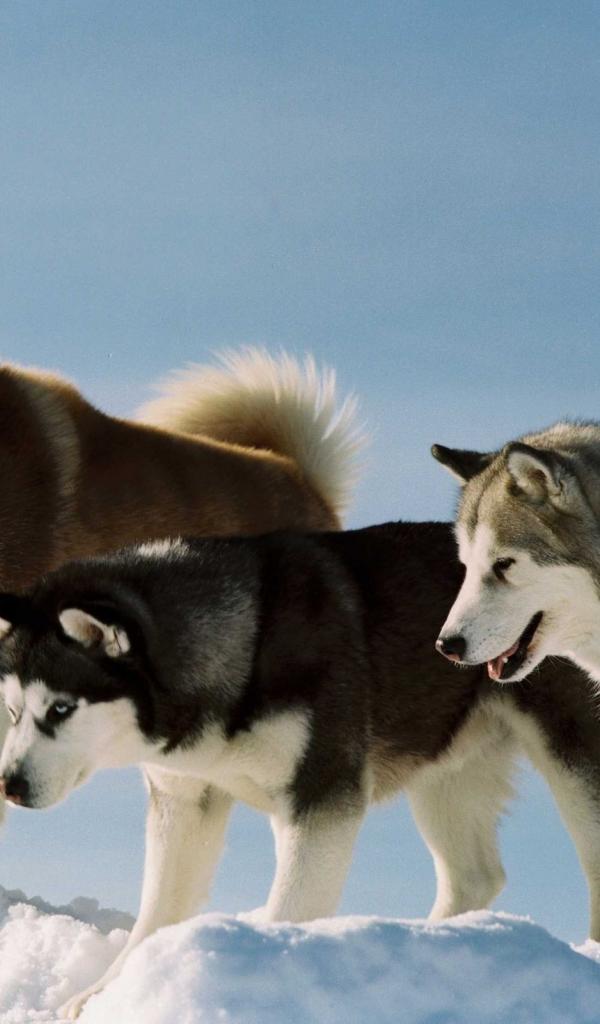 Wallpaper Troika huskies on a hill