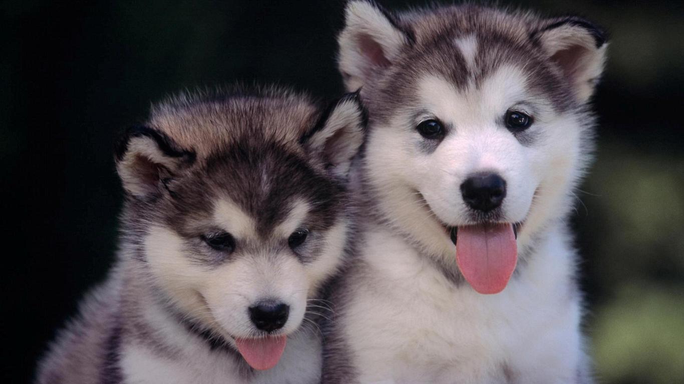 Wallpaper A pair of cute puppies huskies
