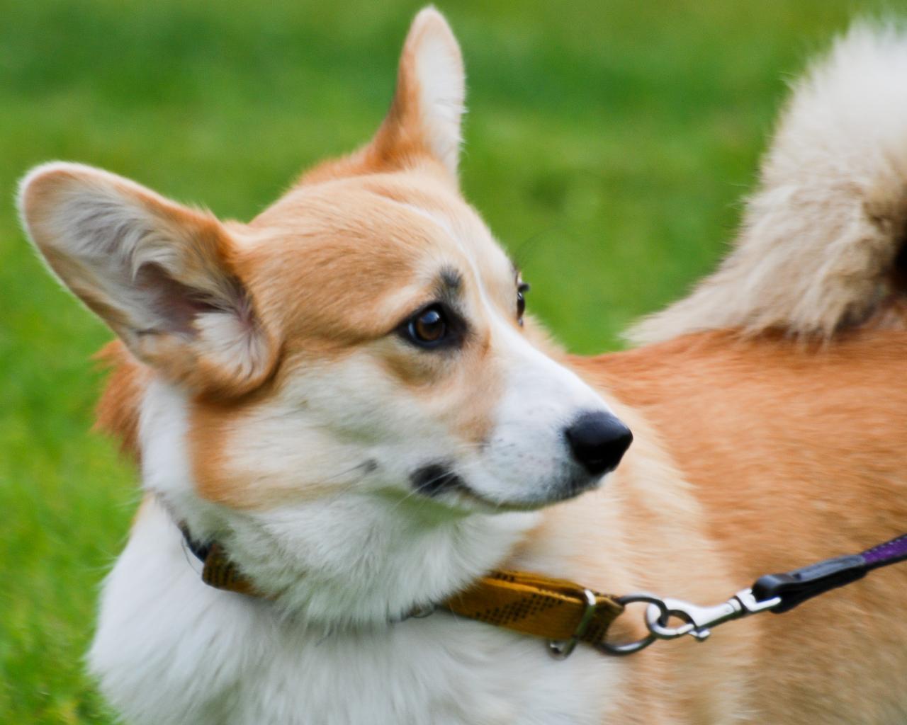 » Wallpaper Surprised velsh Corgi on a leash