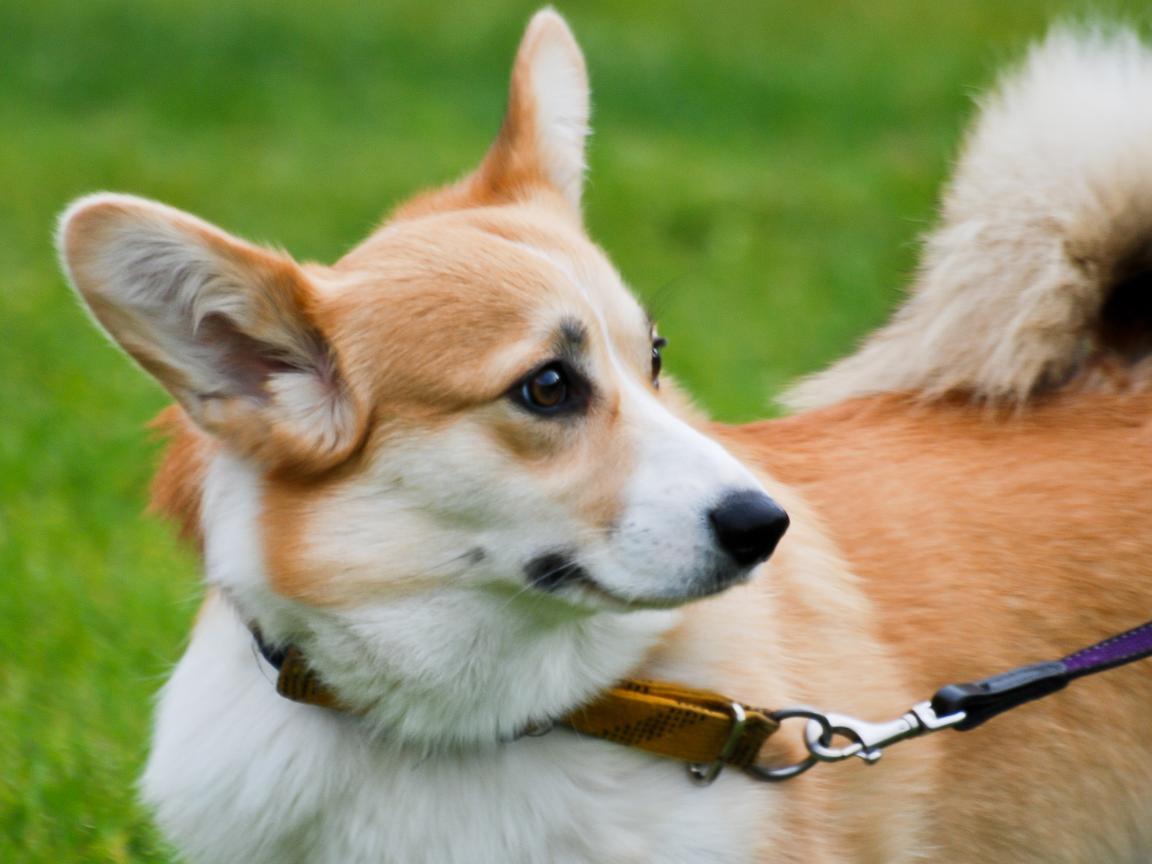 » Wallpaper Surprised velsh Corgi on a leash