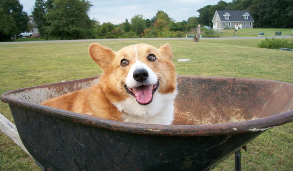 » Wallpaper Dog velsh Corgi in a wheelbarrow