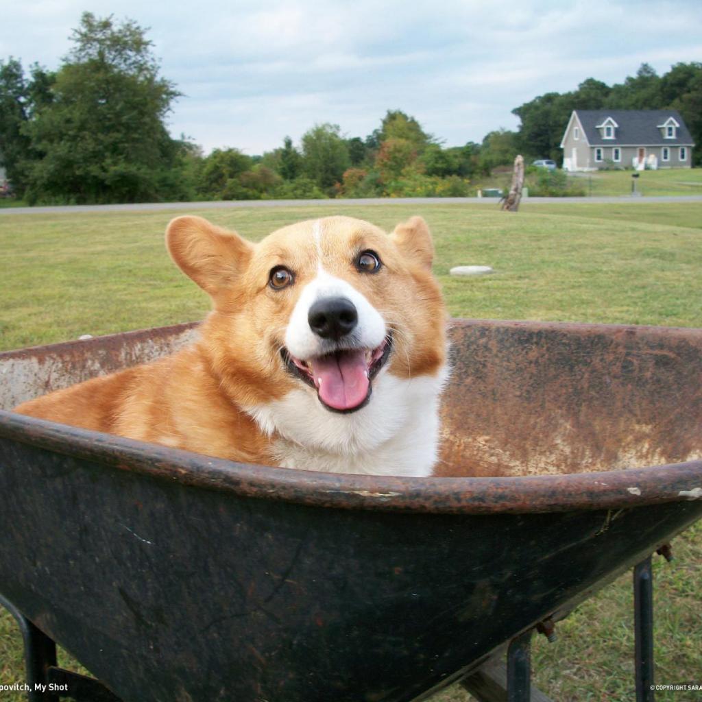 » Wallpaper Dog velsh Corgi in a wheelbarrow