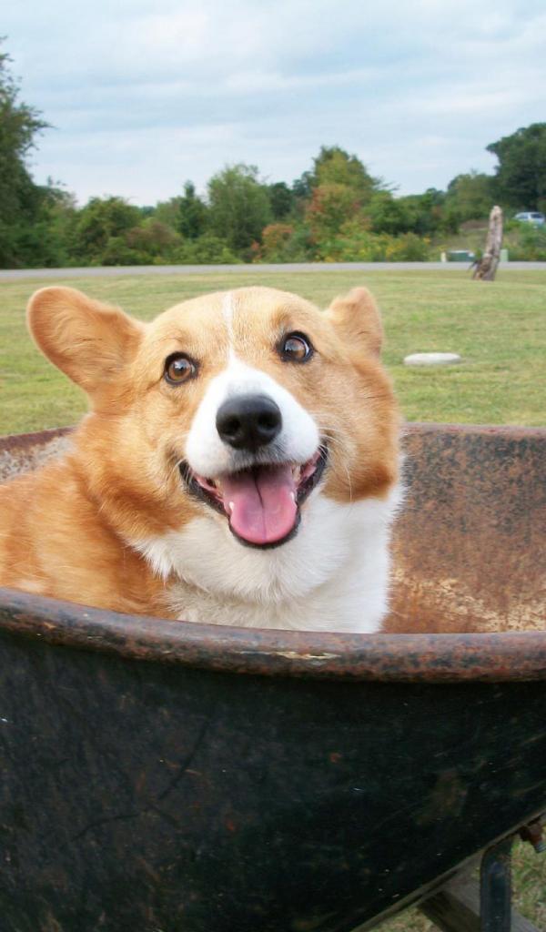 » Wallpaper Dog velsh Corgi in a wheelbarrow
