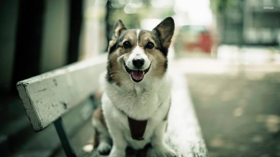 Wallpaper Welsh Corgi on the bench