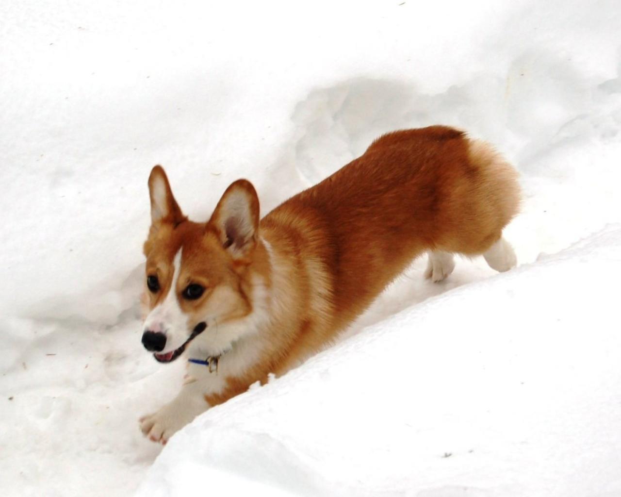 Wallpaper Dog velsh Corgi running in the snow