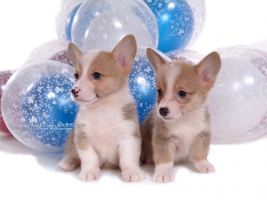 Wallpaper Two puppies velsh Corgi on a background of balloons