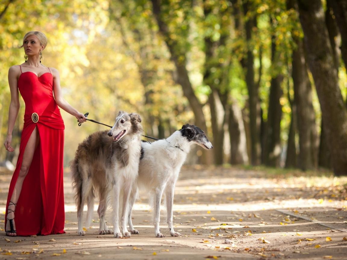 Wallpaper Girl in red with greyhounds