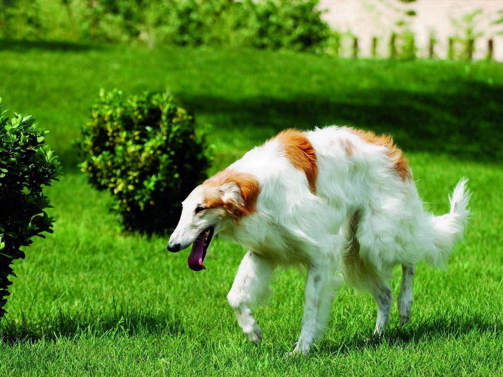 » Wallpaper Borzoi running on the lawn