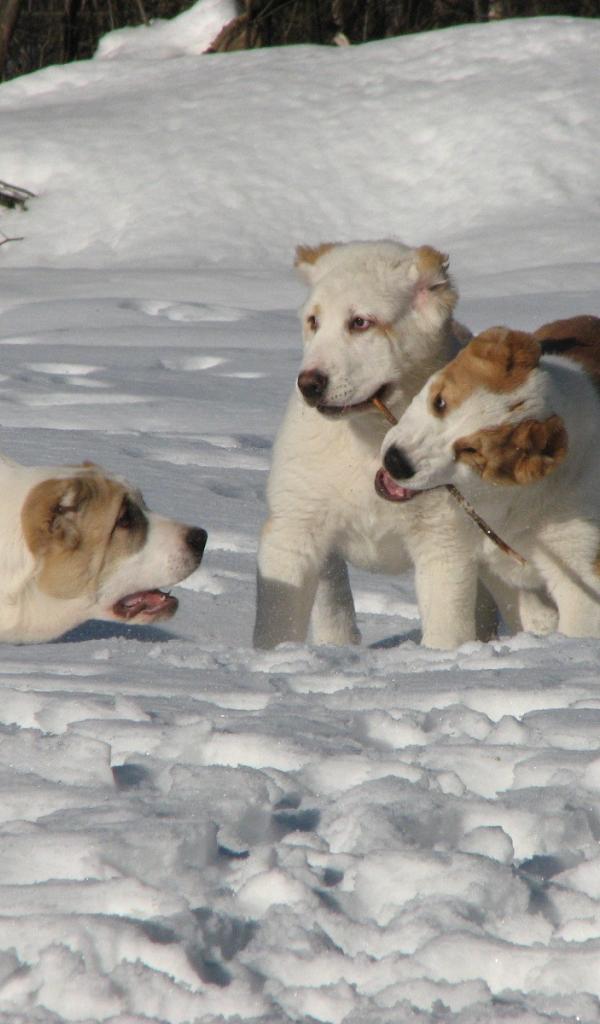 Wallpaper kazakh sheepdog playing on the snow