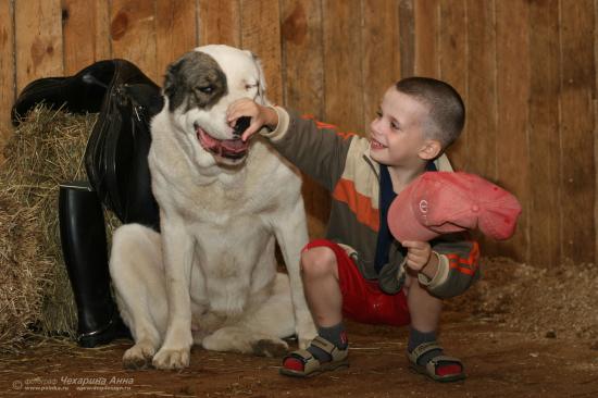 Wallpaper Boy sitting with Alabai