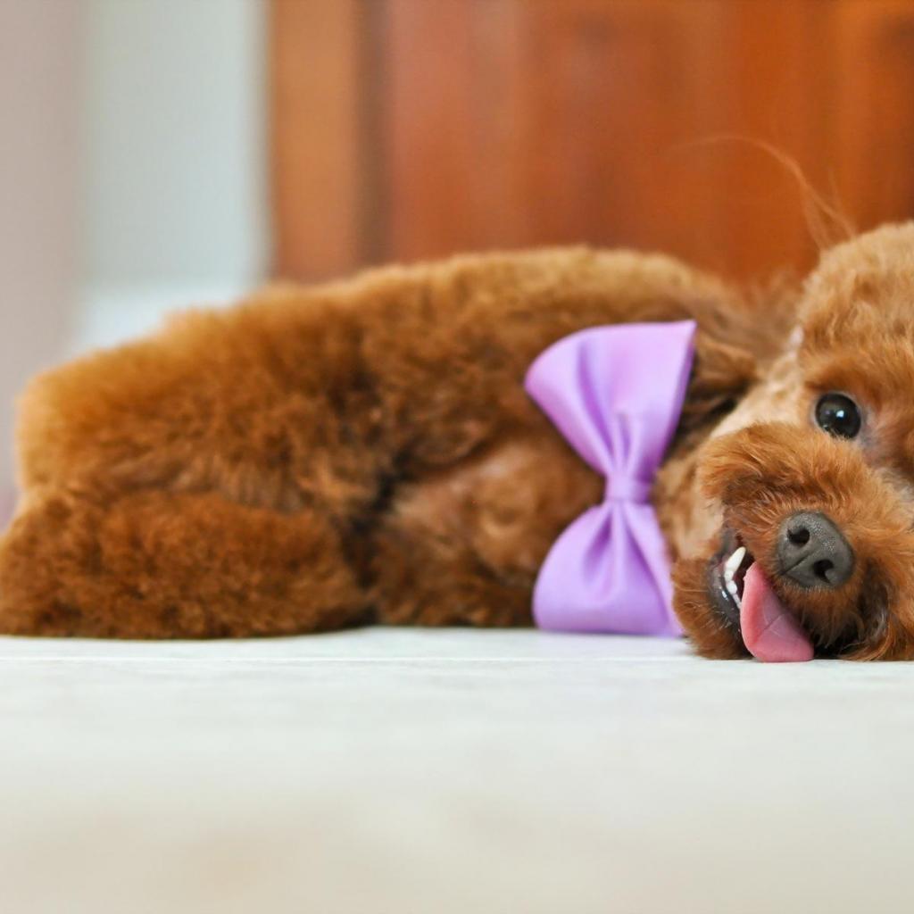 Wallpaper Puppy of a poodle with a bow