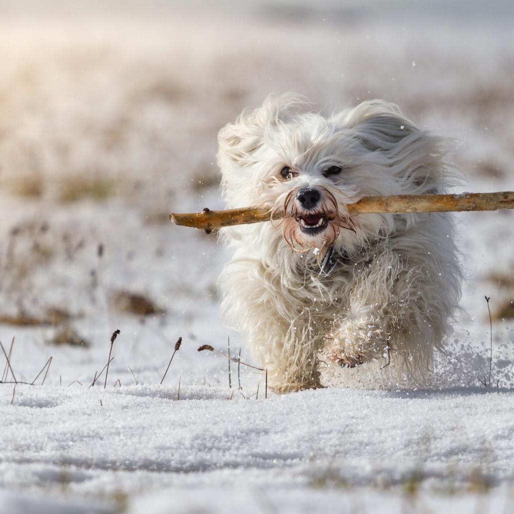 Wallpaper White Poodle running in the snow