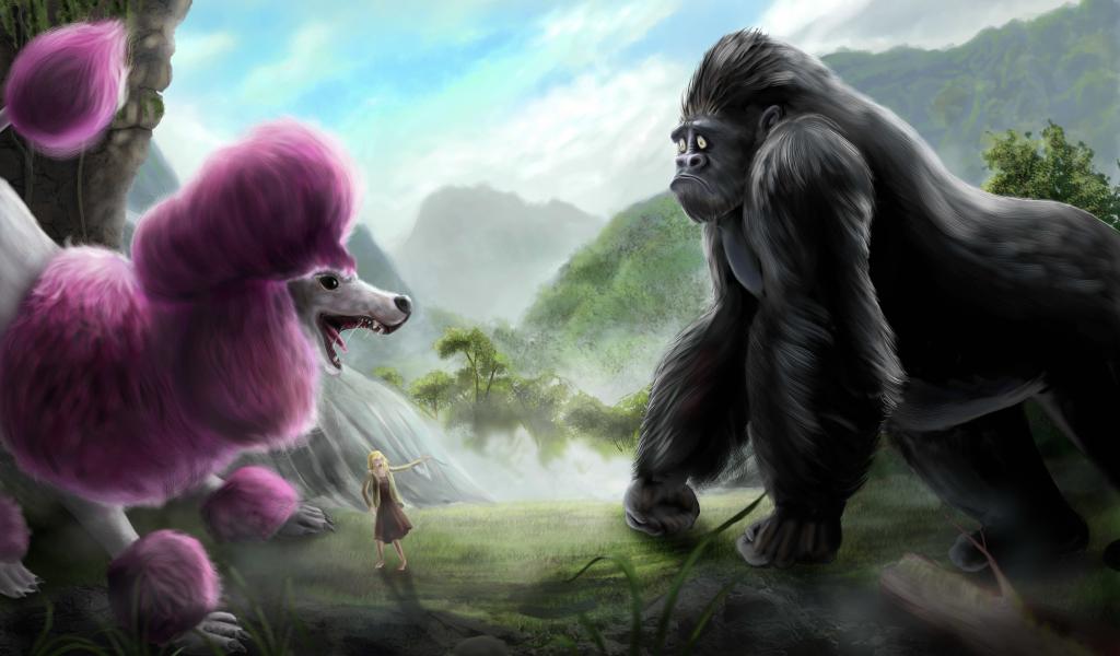 » Wallpaper Pink Poodle and a gorilla