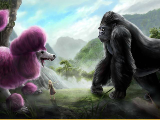 Wallpaper Pink Poodle and a gorilla