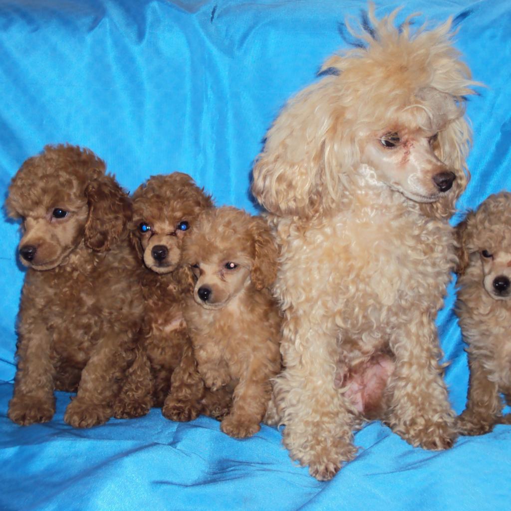 » Wallpaper Mom poodle with puppies