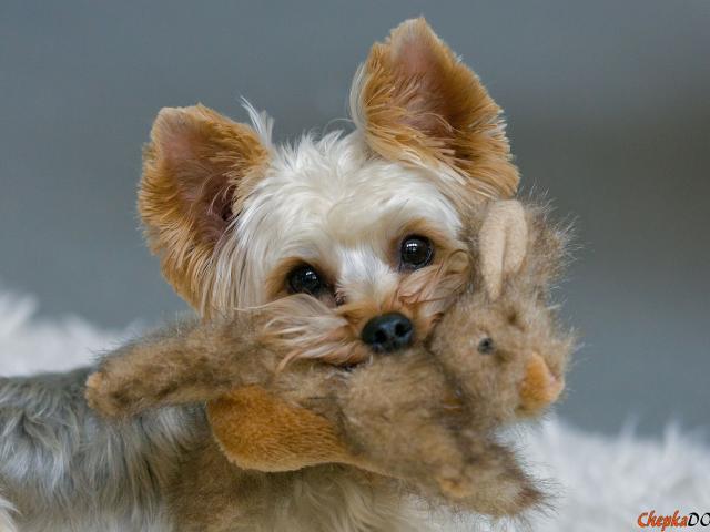 Wallpaper Pekingese with a toy