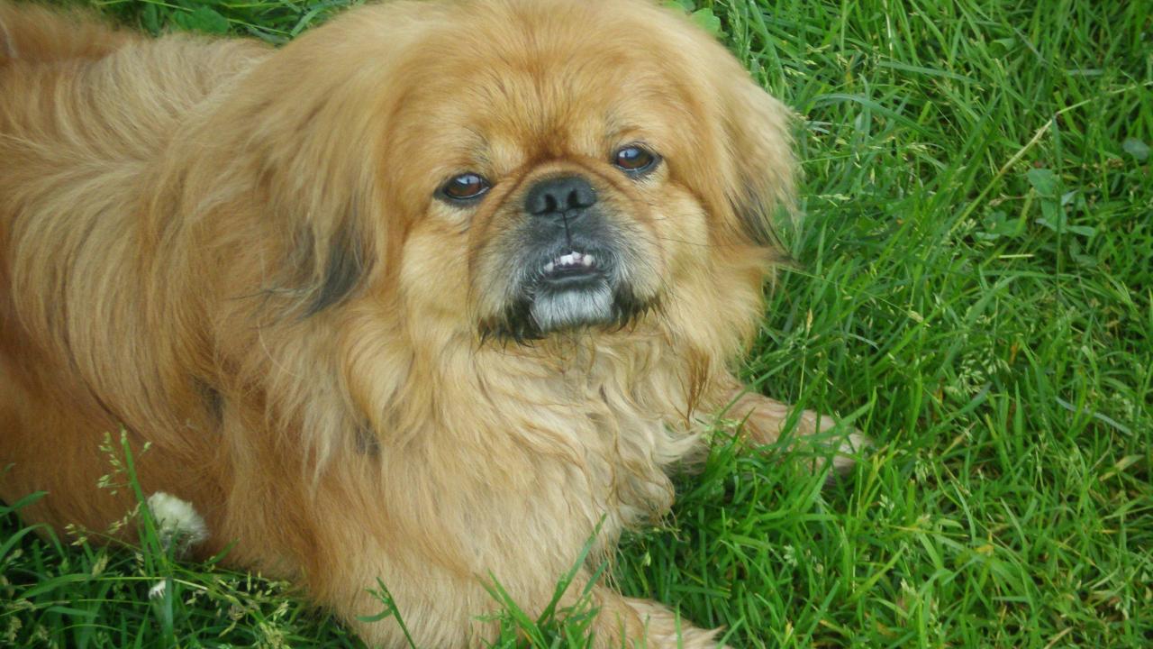 » Wallpaper Toothy Pekingese on the grass