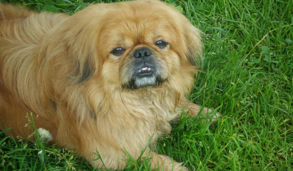 » Wallpaper Toothy Pekingese on the grass