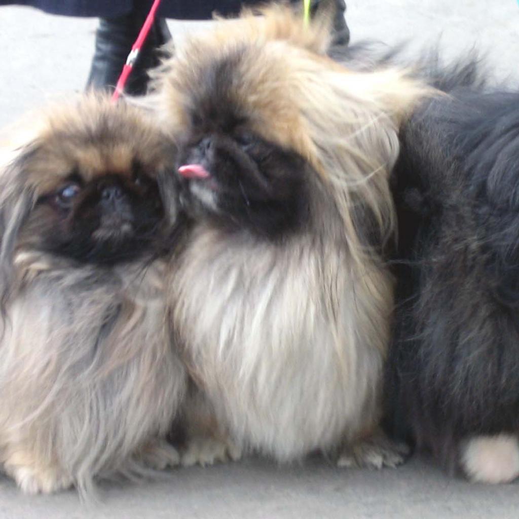 Wallpaper Three Pekinese on a walk