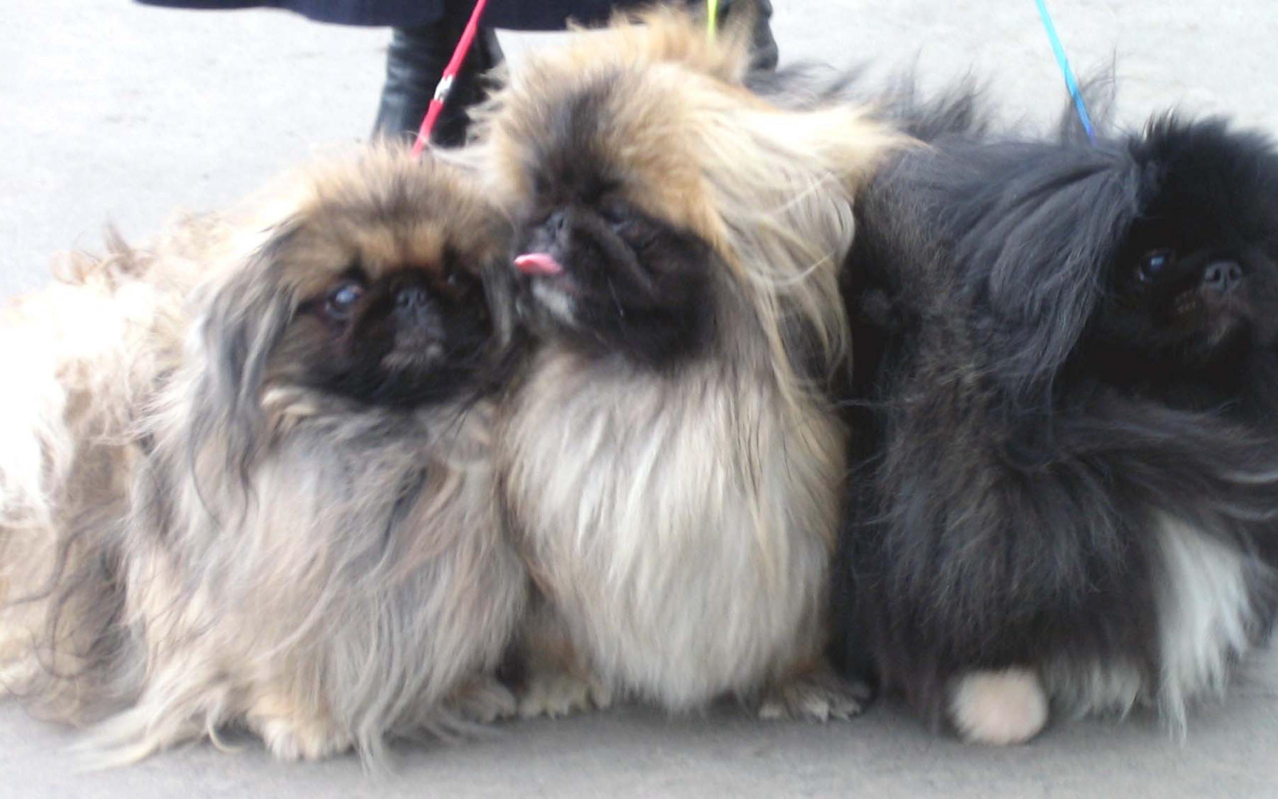 Wallpaper Three Pekinese on a walk