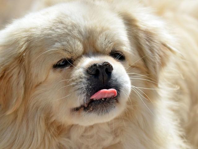 Wallpaper Pekingese showing tongue