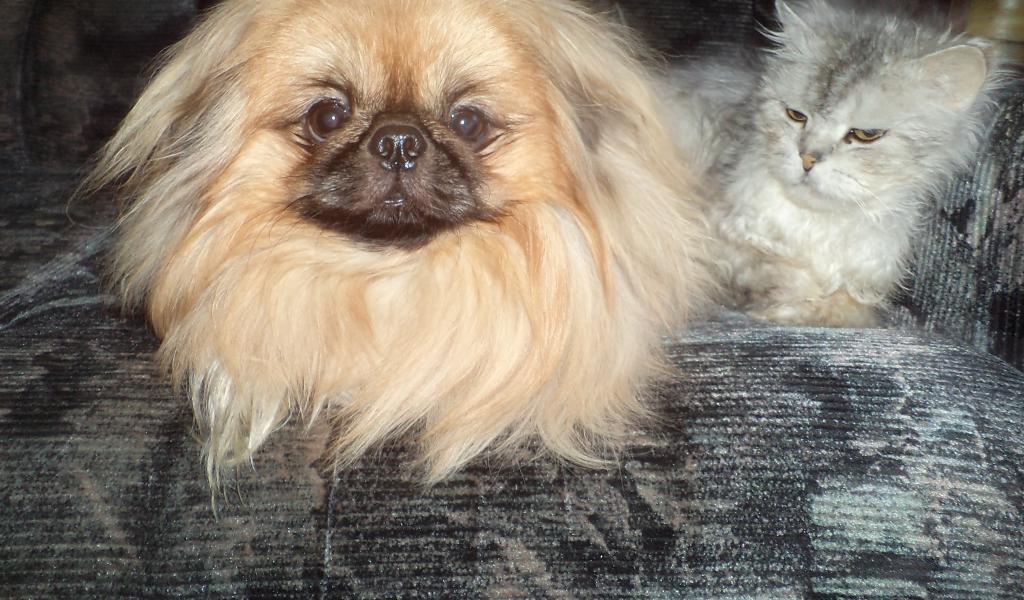 » Wallpaper Pekingese and unhappy cat