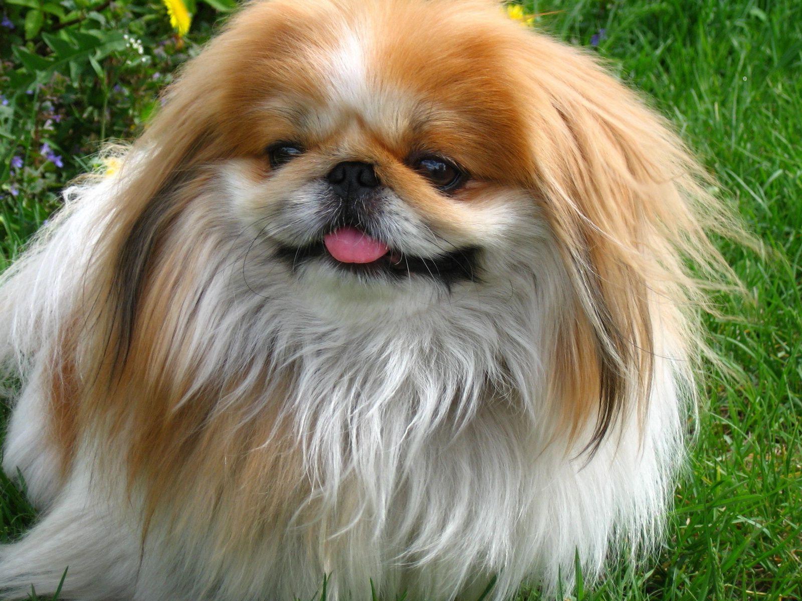 Wallpaper Pekingese walks in the garden