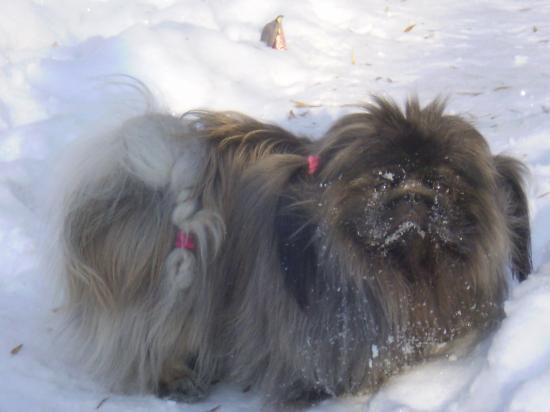 » Wallpaper Pekingese in the snow