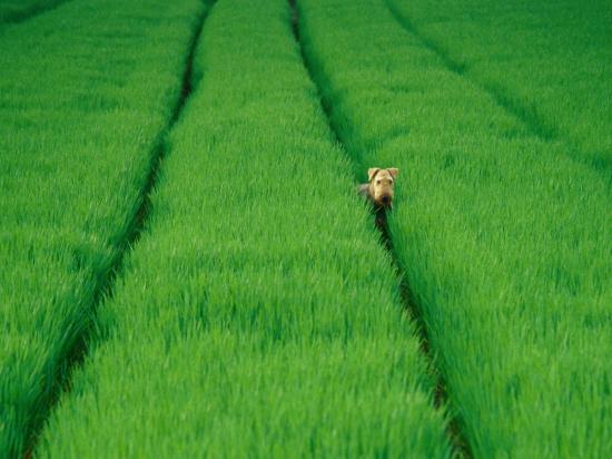 » Wallpaper Airedale in the green fields