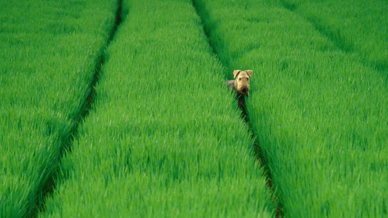» Wallpaper Airedale in the green fields