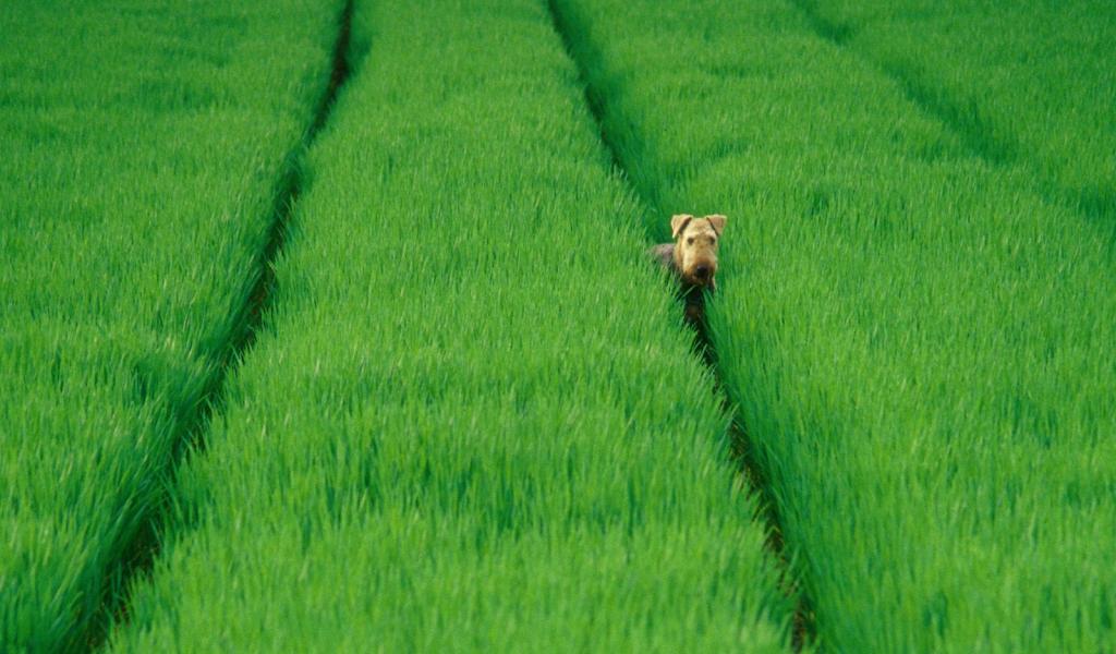 » Wallpaper Airedale in the green fields