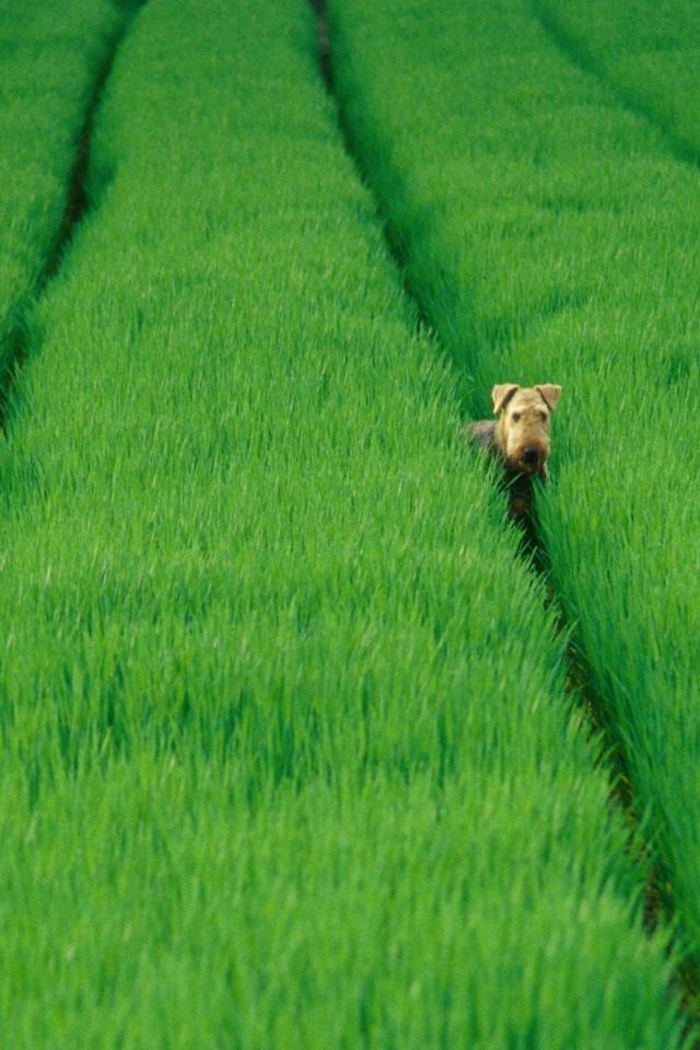 » Wallpaper Airedale in the green fields
