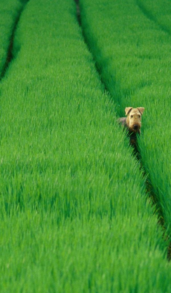 » Wallpaper Airedale in the green fields