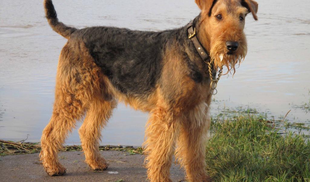 » Wallpaper Beautiful Airedale near the water