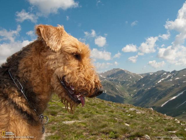 » Wallpaper Glad Airedale in the mountains