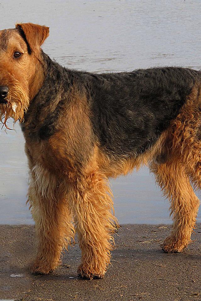Wallpaper Beautiful Airedale near the water