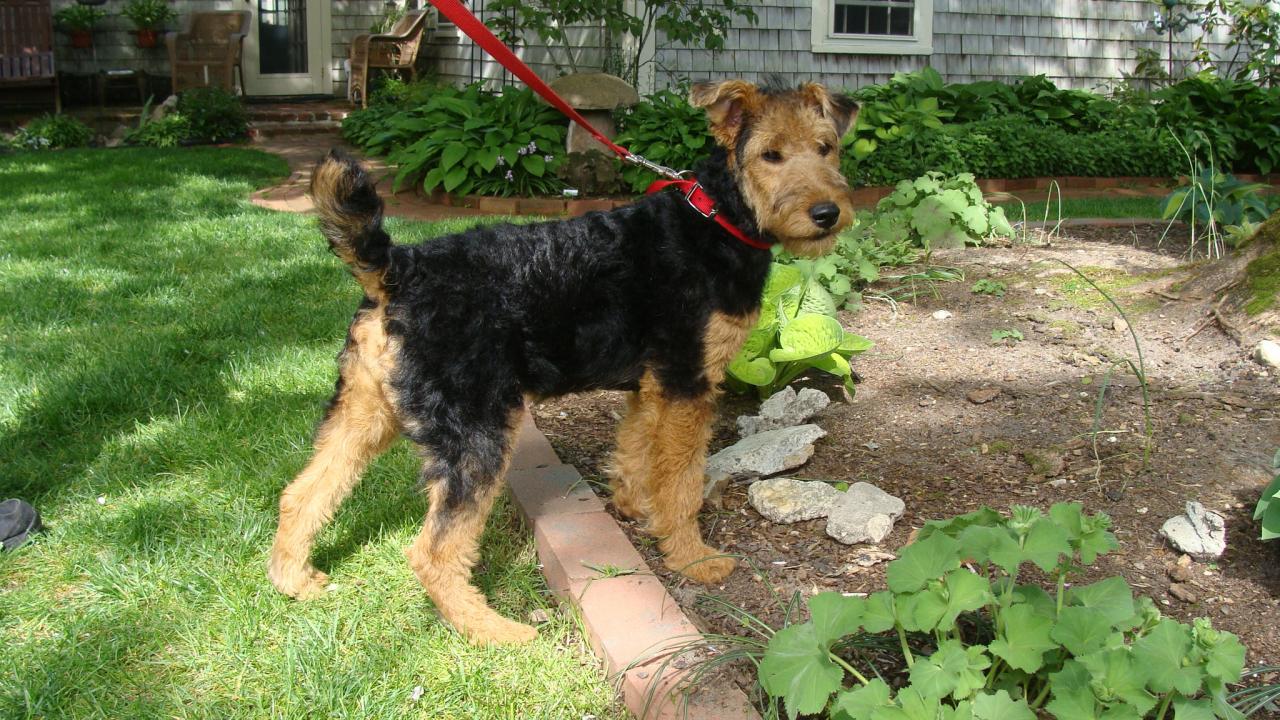 Wallpaper Airedale Terrier puppy for a walk