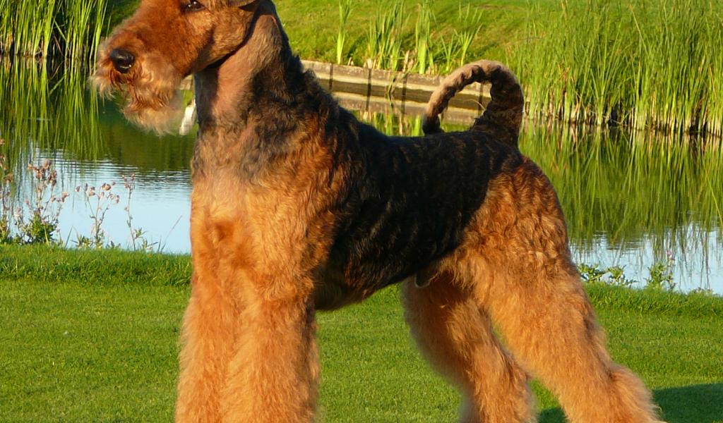 » Wallpaper Airedale dog pond