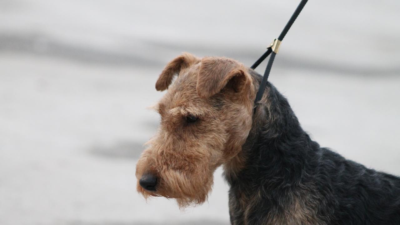 Wallpaper Airedale dog on a leash