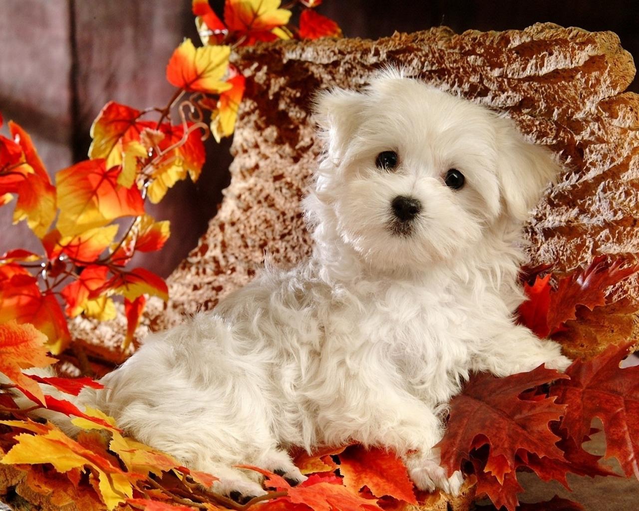 » Wallpaper Cute Bichon among foliage