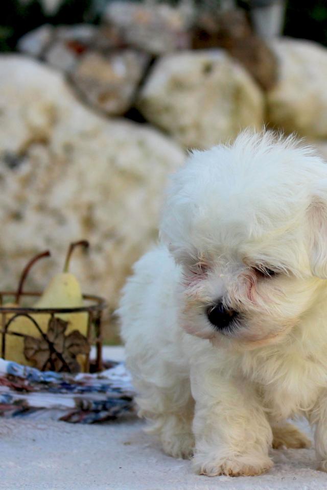 Wallpaper Lap dog and a basket of fruit