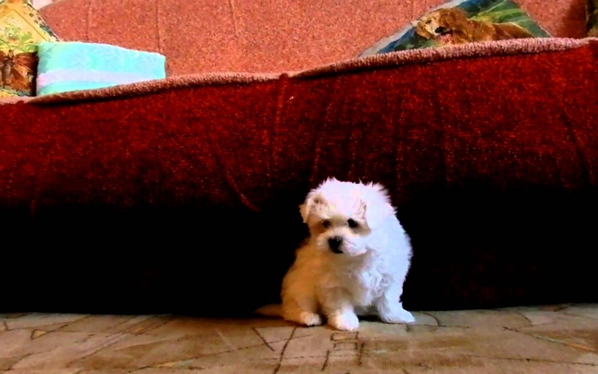 Wallpaper Puppy lapdogs under the sofa