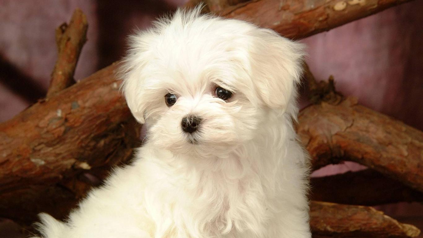 Wallpaper Curious white puppy lapdogs