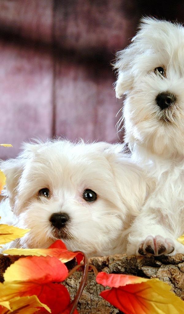 Wallpaper Puppies lapdogs of leaves