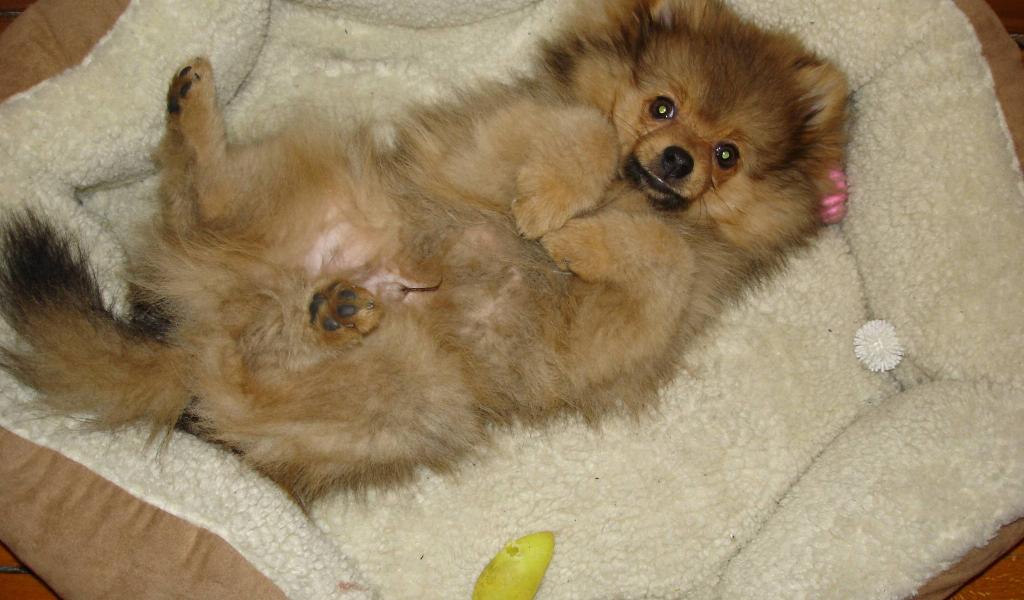 » Wallpaper Spitz resting in the crib