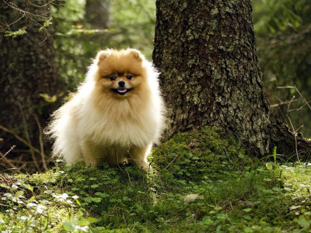 Wallpaper Spitz walking in the woods