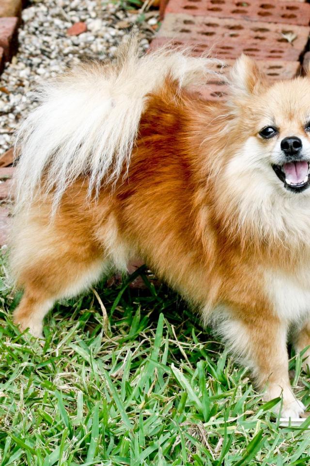 Wallpaper Spitz smiling on grass