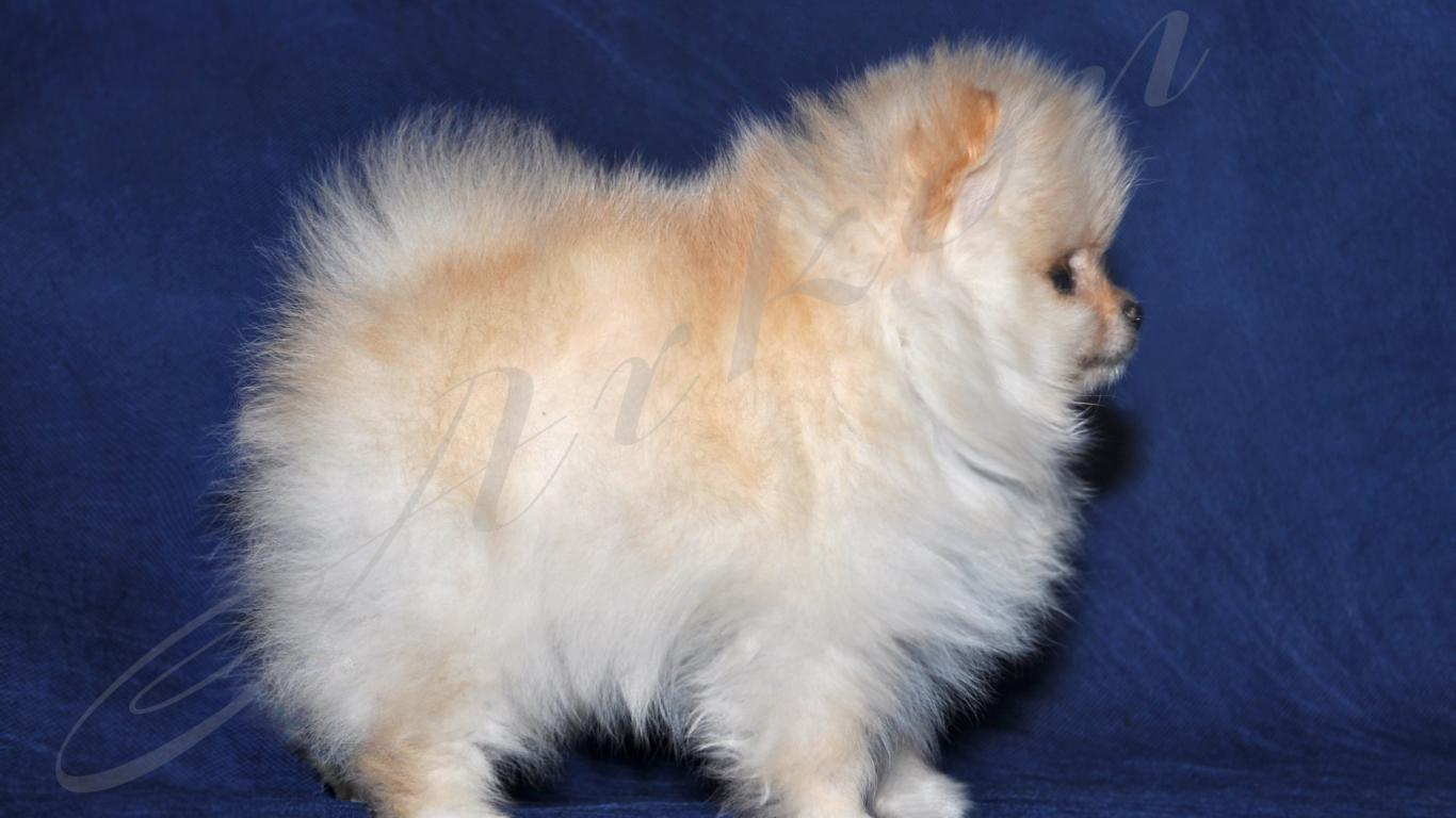 Wallpaper Fluffy White Spitz on a blue background